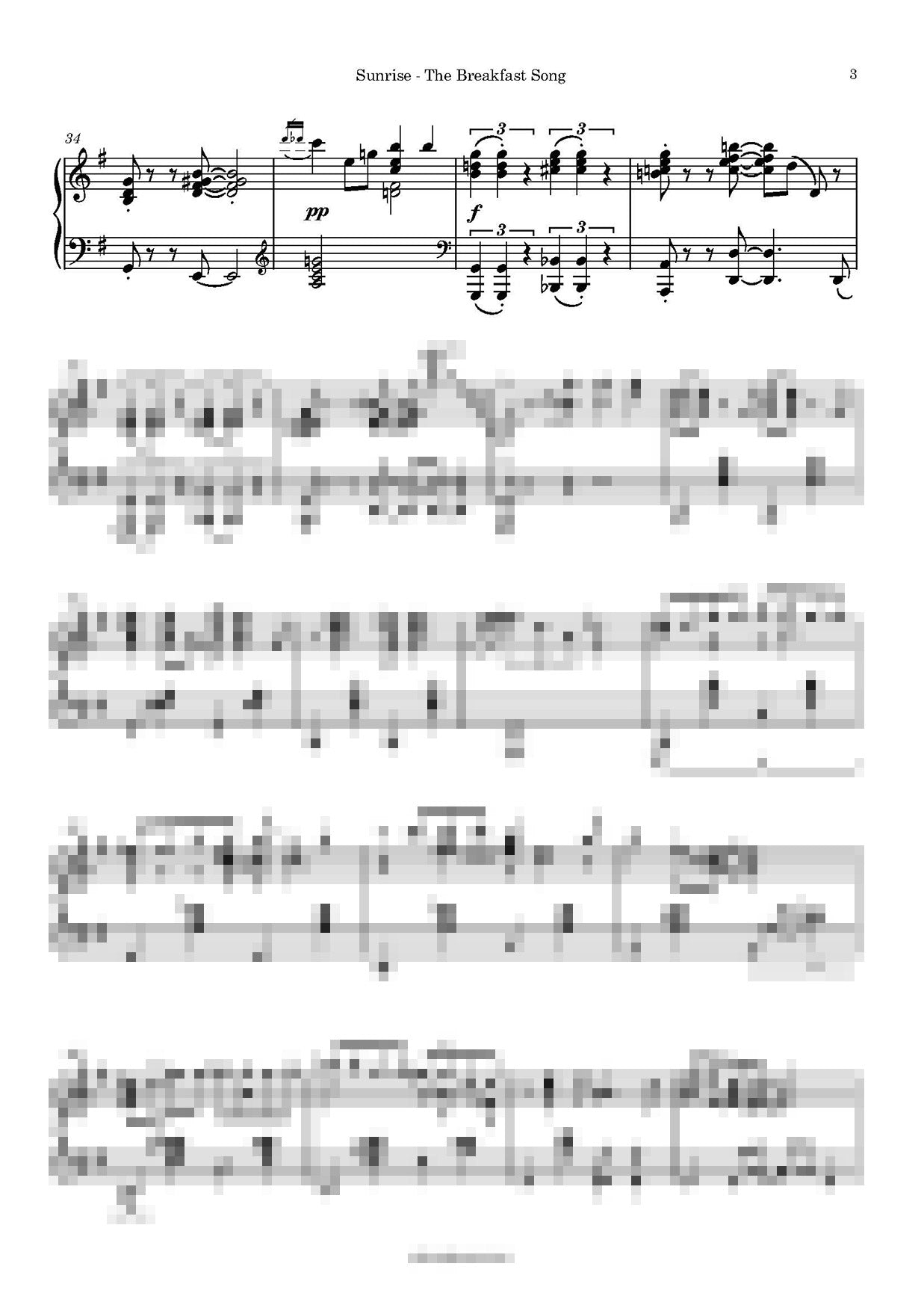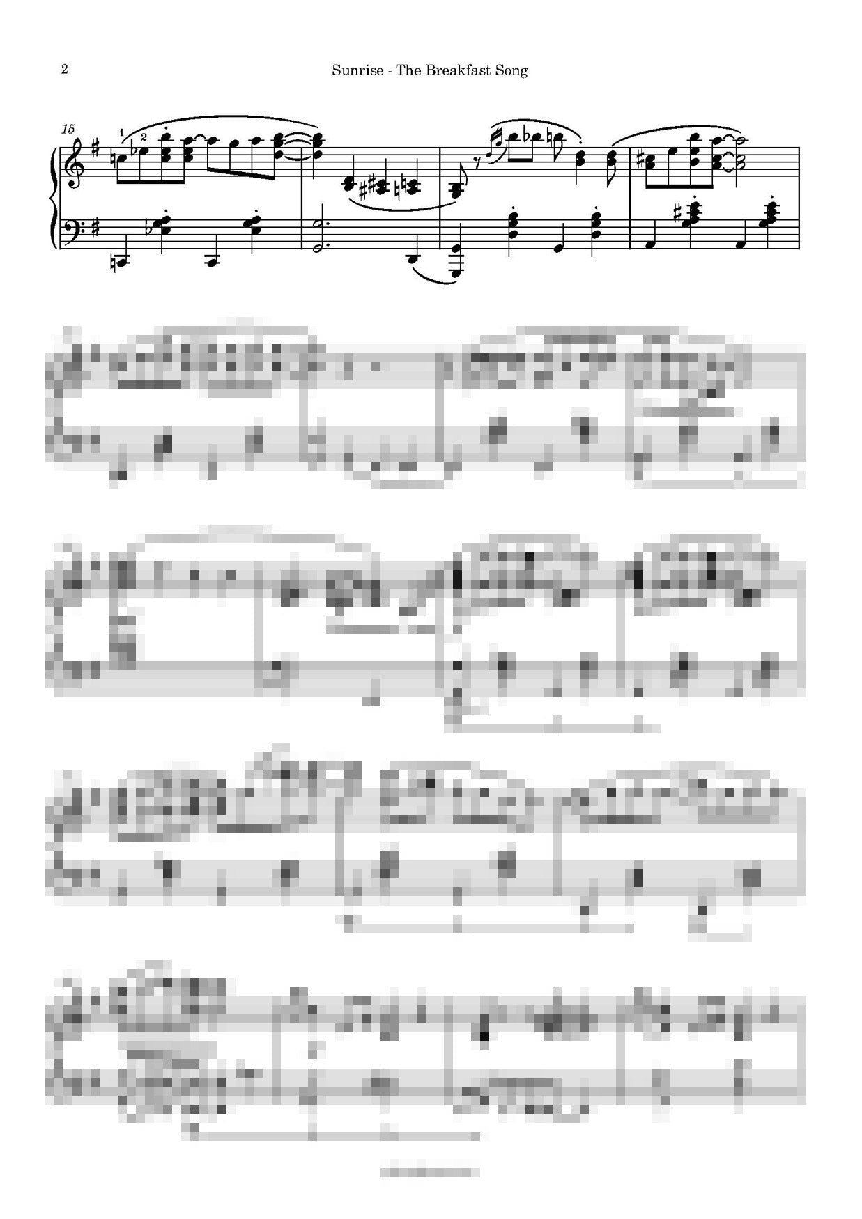 Delight in the enchanting melody of "The Breakfast Song," the emblematic theme song from From Up on Poppy Hill, composed by Taniyama Hiroko. This lighthearted and cheerful tune is perfect for intermediate pianists wanting to bring a bit of morning joy to their repertoire.